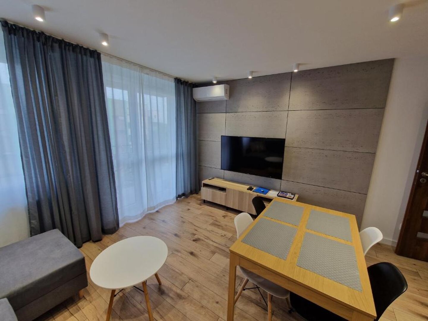 Large bedroom, comfortable living room, air conditioning,spacious bathroom with large shower.Functional kitchenette. Closet in the hallway. Balcony.